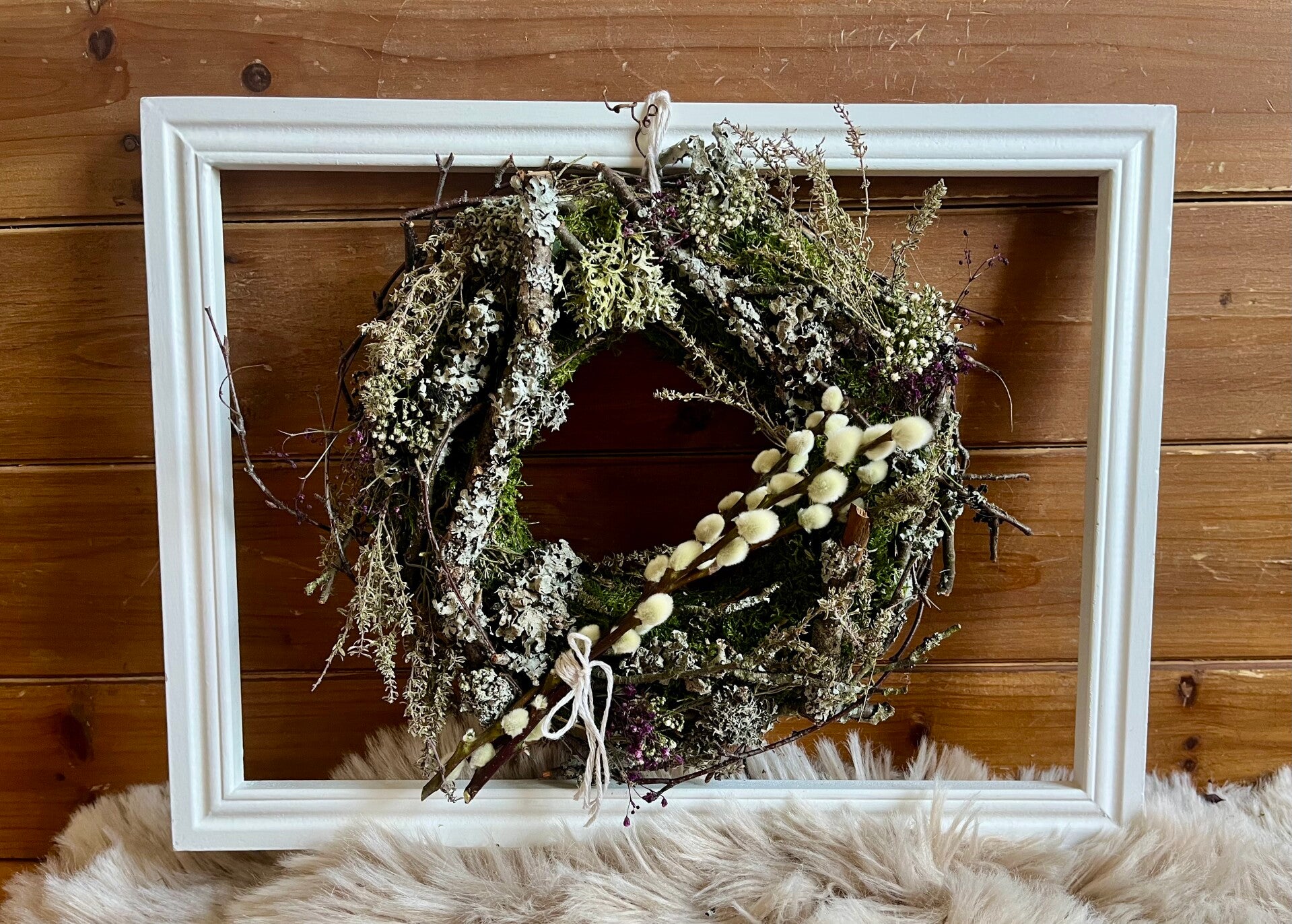 Mooskranz (Ø25cm) mit Ästen und Weidenkätzchen zum hängen.